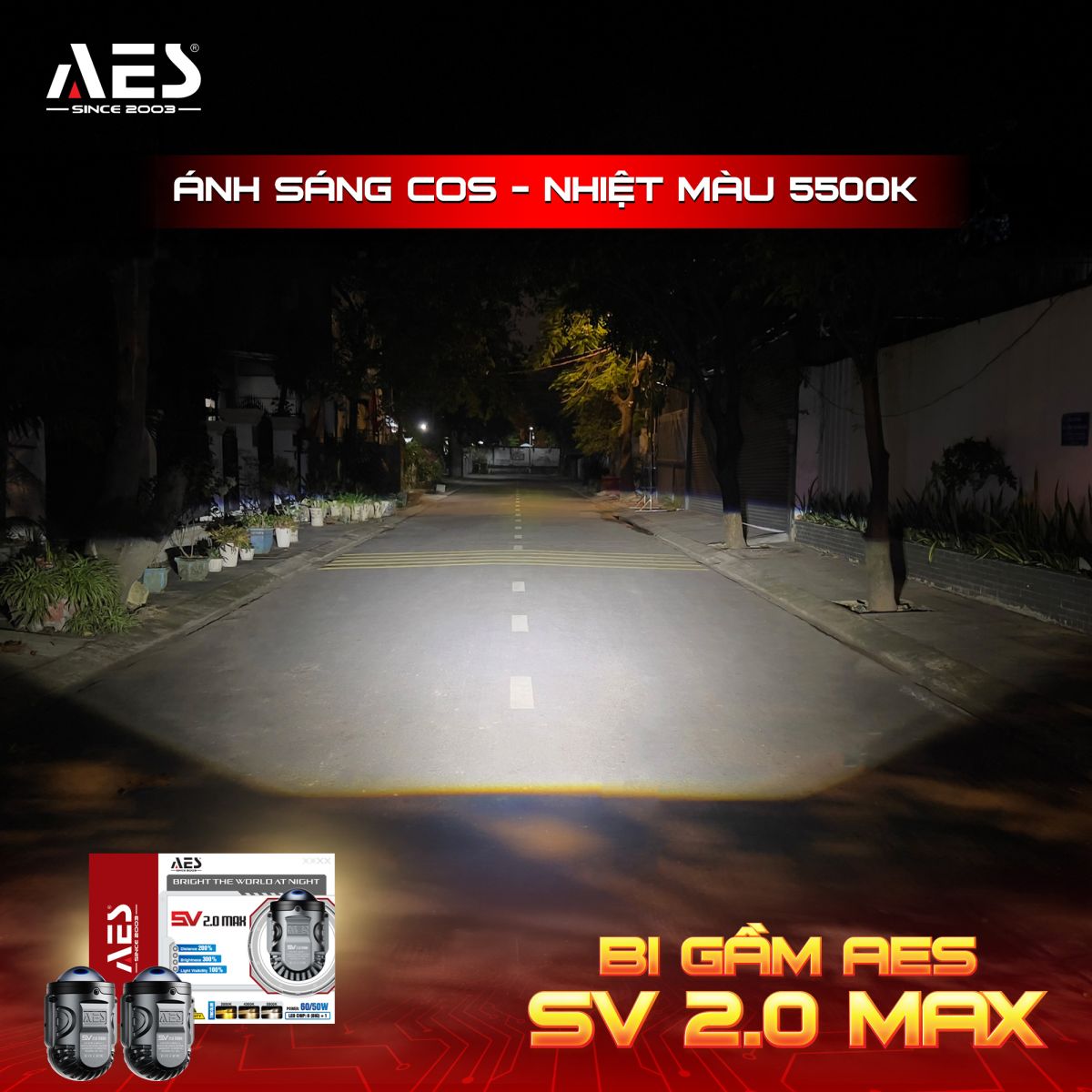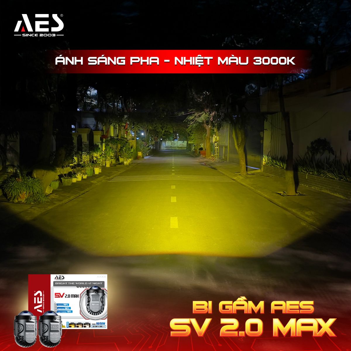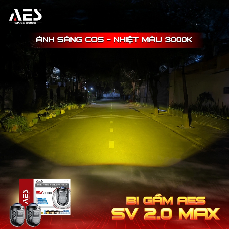 Bi gầm AES SV 2.0 Max - “Trùm Cos” trong phân khúc bi gầm 2 inch ba nhiệt màu được khẳng định bằng hiệu năng thực tế. Hội tụ loạt công nghệ chiếu sáng cao cấp, mẫu bi này mang đến vùng Cos dày - đậm - phủ đều hoàn hảo, cho ánh sáng sắc nét, ổn định và cực kỳ dễ chịu khi vận hành ban đêm.