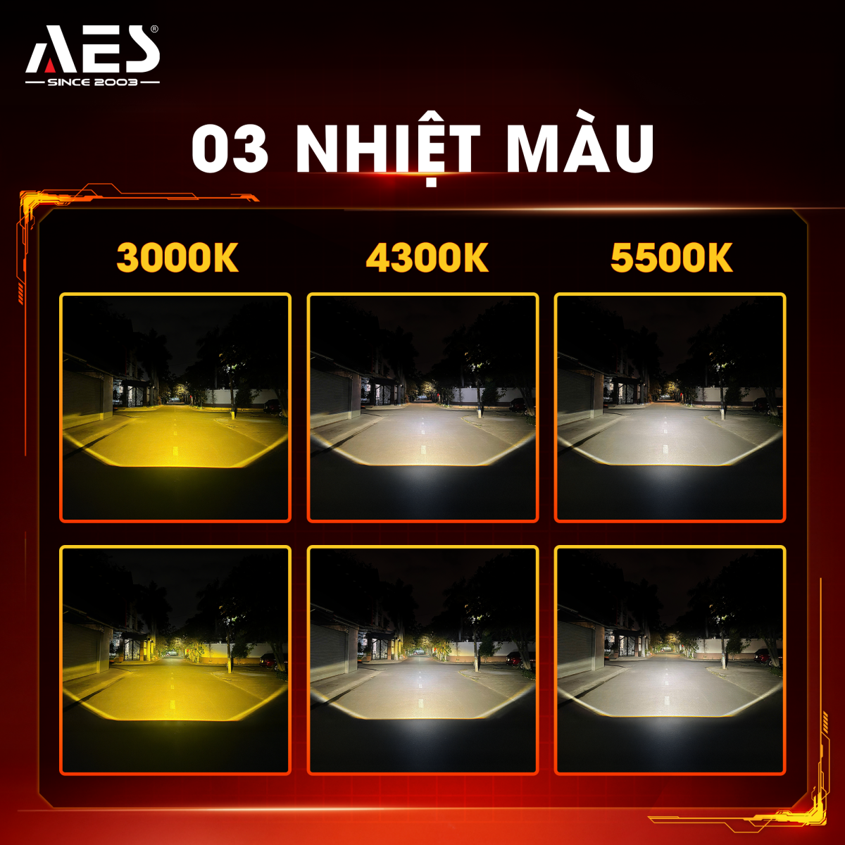 AES SV 3.0 Max được trang bị 3 nhiệt màu chuẩn quang học 3000K - 4300K - 5500K, cho khả năng hiển thị ánh sáng chính xác, đồng đều tuyệt đối, chuyển màu mượt mà, không đốm trắng, không loang sắc. Khác biệt hoàn toàn với nhiều bi gầm 3 màu phổ thông thường gặp tình trạng lệch màu, ánh sáng thiếu ổn định gây khó chịu và kém thẩm mỹ, SV 3.0 Max giải quyết triệt để những hạn chế đó, mang đến chất lượng ánh sáng tốt và dễ chịu cho mắt.