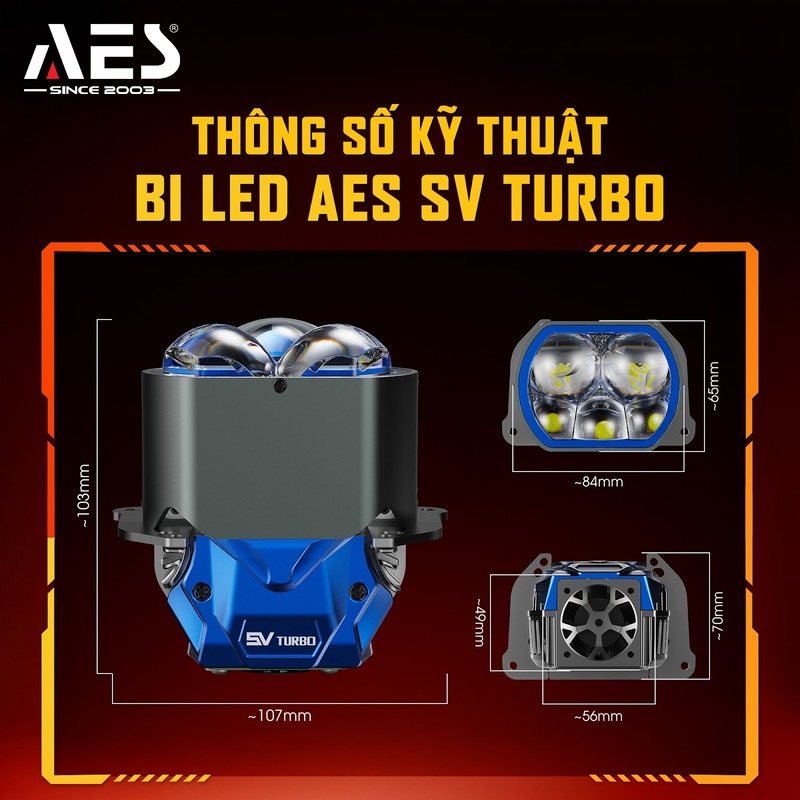 Bi LED AES SV Turbo được thiết kế với body nhỏ gọn, tối ưu kích thước để dễ dàng lắp đặt trên nhiều dòng xe khác nhau. Phần thân đèn được hoàn thiện từ hợp kim cao cấp, mang lại cảm giác chắc chắn và độ bền cao trong quá trình sử dụng. Điểm nhấn nổi bật của sản phẩm nằm ở thiết kế lens vuông đặc trưng, tạo nên diện mạo khác biệt và hiện đại. Nhờ kích thước tối ưu, SV Turbo có thể tương thích tốt với nhiều dòng xe phổ biến hiện nay.