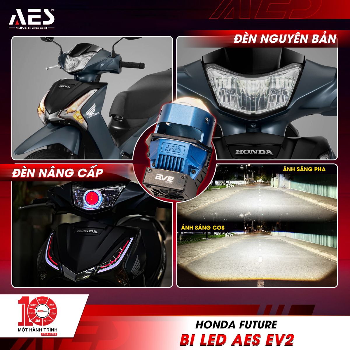 Honda Future được nâng cấp bi LED AES EV2 Square tại Điện Xe N2T - bước cải tiến đột phá mang đến diện mạo hiện đại và khả năng chiếu sáng vượt trội. Với công nghệ ánh sáng tiên tiến, AES EV2 Square không chỉ giúp tăng cường tầm nhìn rõ nét trong mọi điều kiện di chuyển, mà còn tạo điểm nhấn sang trọng, khác biệt cho chiếc Future. Hãy cùng AES Việt Nam tham khảo chi tiết qua bài viết dưới đây nhé!