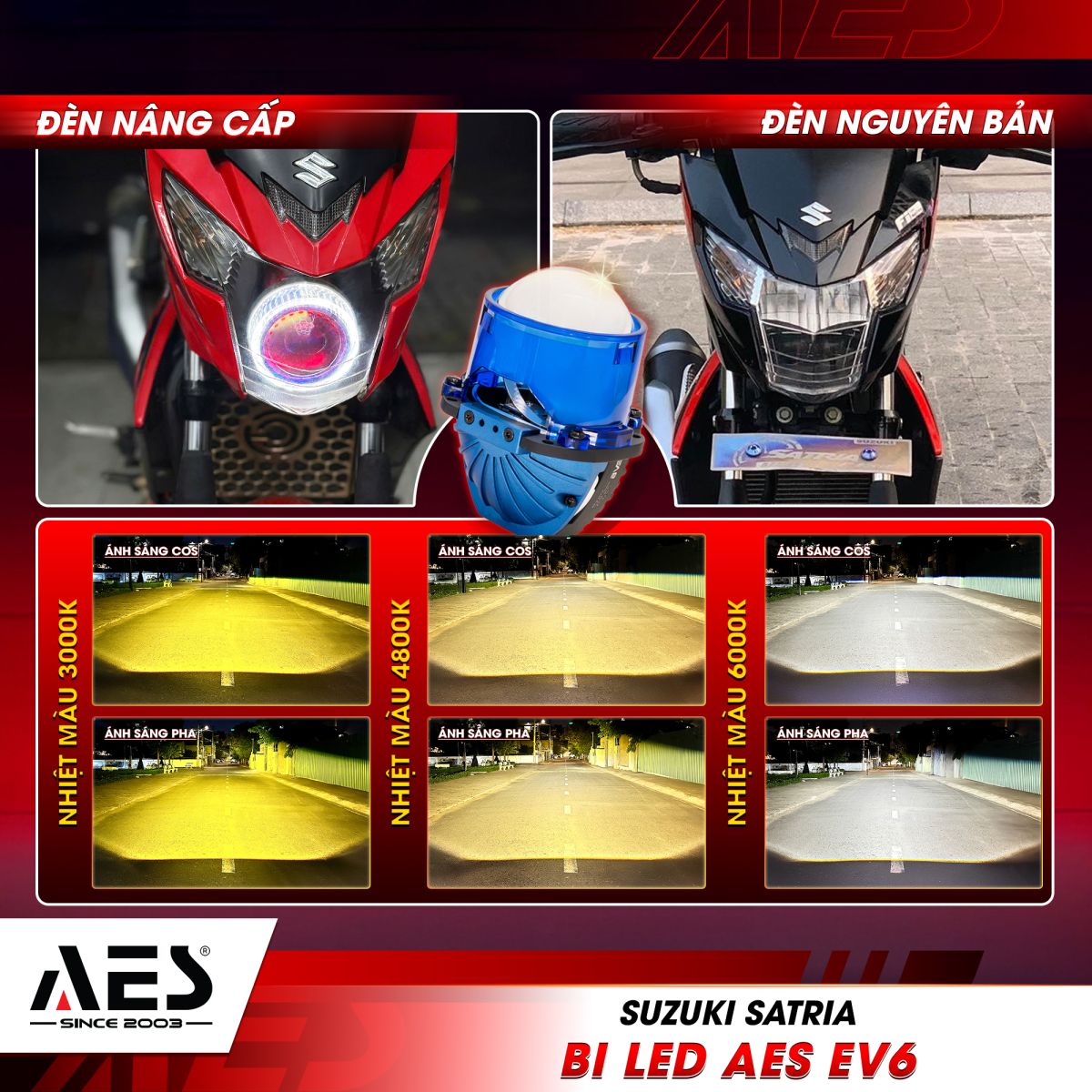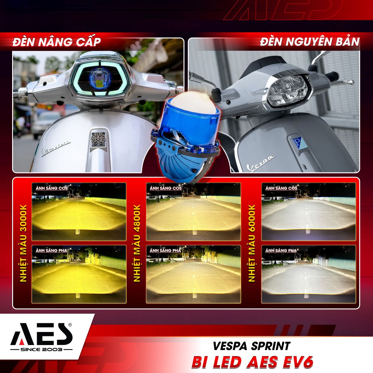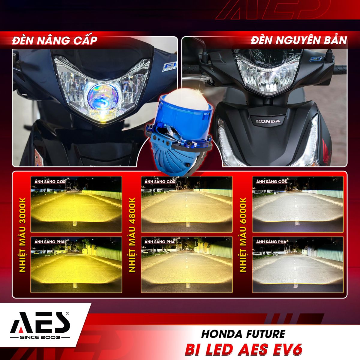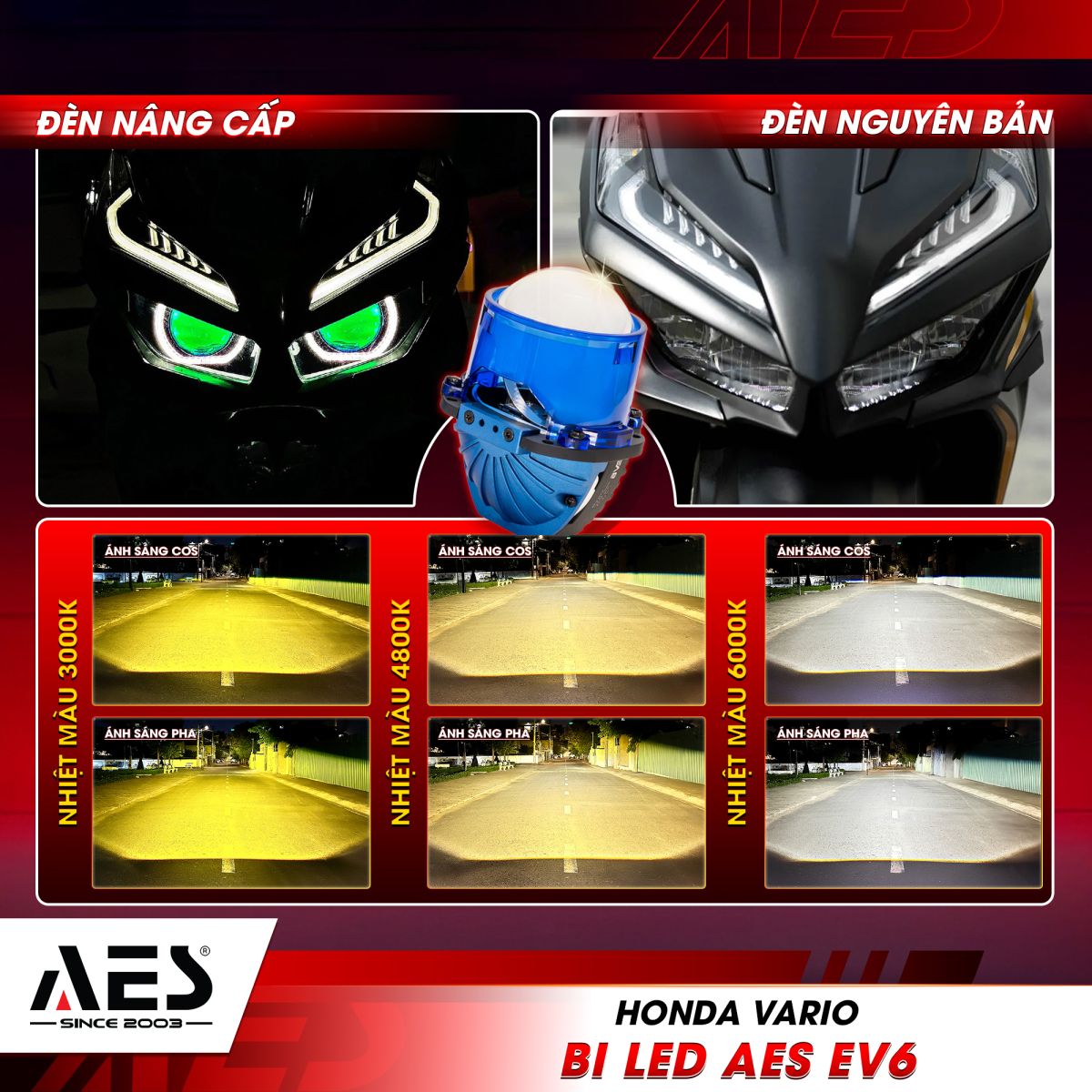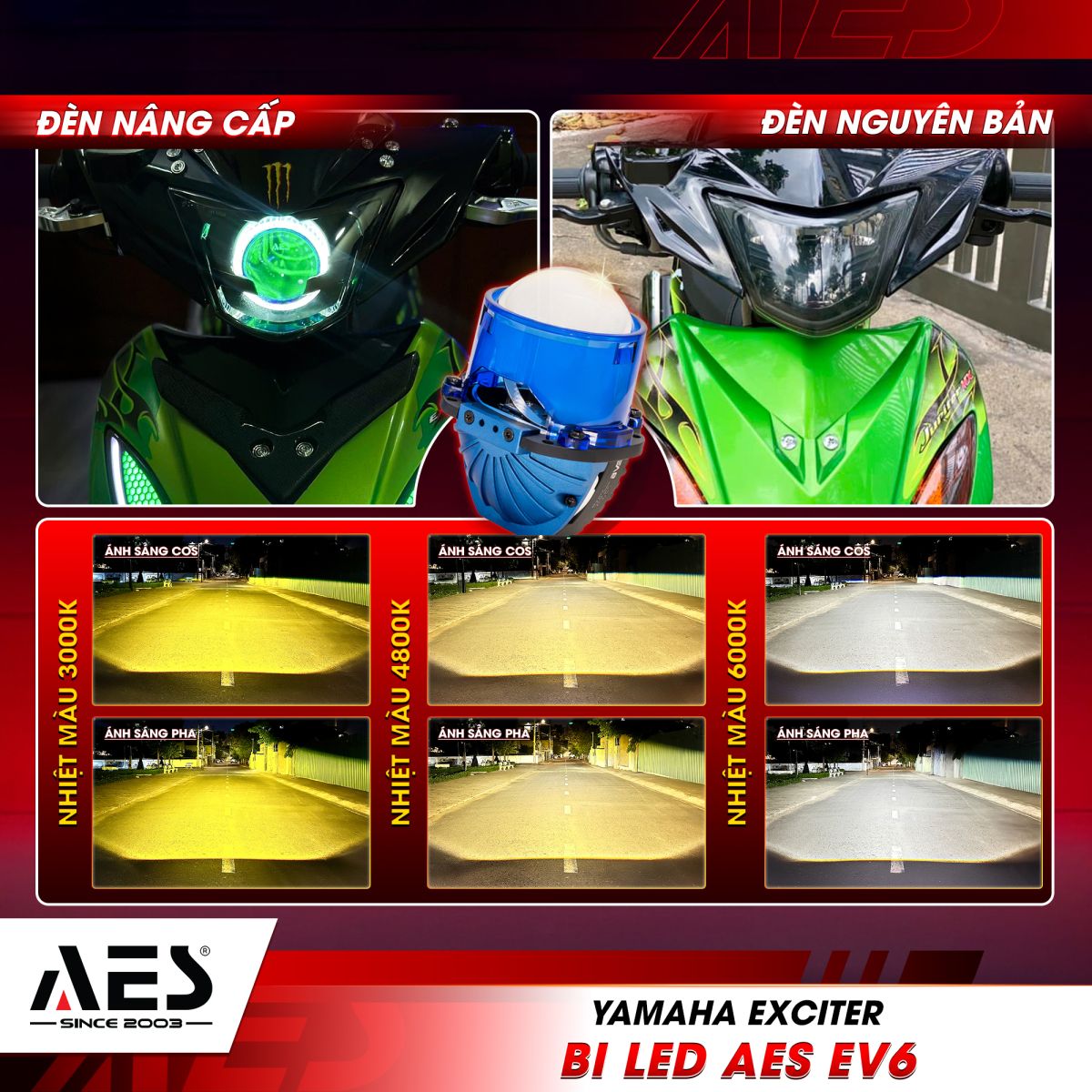 2. Bi LED AES EV6 - Tăng sáng cao cấp, cân nét mọi cung đường